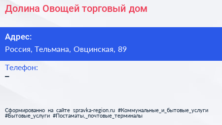 Долина Овощей, торговый дом по адресу Овцино, посёлок имени Свердлова, Свердловское городское поселение, Всеволожский район, Ленинградская область, Северо-Западный федеральный округ, 188682, Россия в дальнейшем Организация, размещена в следующих категориях: