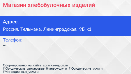 Магазин хлебобулочных изделий по адресу Арго, Пушкинская улица, Ям-Ижора, Тельмановское городское поселение, Тосненский район, Ленинградская область, Северо-Западный федеральный округ, 187033, Россия в дальнейшем Организация, размещена в следующих категориях: