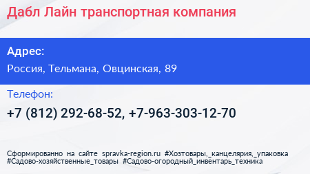 Дабл Лайн, транспортная компания по адресу Овцино, посёлок имени Свердлова, Свердловское городское поселение, Всеволожский район, Ленинградская область, Северо-Западный федеральный округ, 188682, Россия в дальнейшем Организация, размещена в следующих категориях: