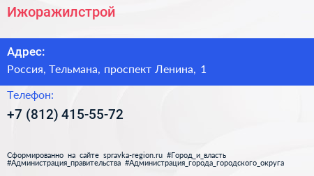 Ижоражилстрой по адресу Здание больницы Адмиралтейских Ижорских заводов с флигелем, 1/5, проспект Ленина, Колпино, Санкт-Петербург, Северо-Западный федеральный округ, 196653, Россия в дальнейшем Организация, размещена в следующих категориях: