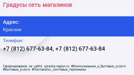 Градусы, сеть магазинов по адресу Красное в дальнейшем Организация, размещена в следующих категориях: