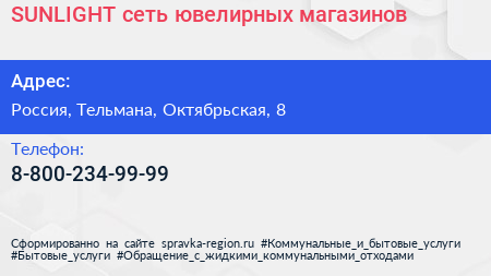 SUNLIGHT, сеть ювелирных магазинов по адресу Торговый центр «Ока», Линия Обороны, Простоквашино, Колпино, Тельмановское городское поселение, Тосненский район, Санкт-Петербург, Северо-Западный федеральный округ, 187032, Россия в дальнейшем Организация, размещена в следующих категориях: