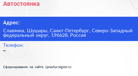 Автостоянка по адресу Славянка, Шушары, Санкт-Петербург, Северо-Западный федеральный округ, 196628, Россия в дальнейшем Организация, размещена в следующих категориях:
