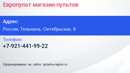 Европульт, магазин пультов по адресу Торговый центр «Ока», Линия Обороны, Простоквашино, Колпино, Тельмановское городское поселение, Тосненский район, Санкт-Петербург, Северо-Западный федеральный округ, 187032, Россия в дальнейшем Организация, размещена в следующих категориях: