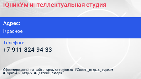 IQникУм, интеллектуальная студия по адресу Красное в дальнейшем Организация, размещена в следующих категориях: