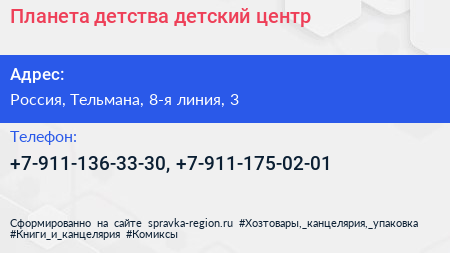 Для связи с организацией воспользуйтесь номером телефона: +7-911-136-33-30, +7-911-175-02-01. Пн: c 08:00-19:00, Вт: c 08:00-19:00, Ср: c 08:00-19:00, Чт: c 08:00-19:00, Пт: c 08:00-19:00, Сб: выходной, Вс: выходной, вы можете обратиться в эту организацию.
