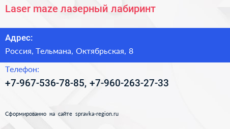 Для связи с организацией воспользуйтесь номером телефона: +7-967-536-78-85, +7-960-263-27-33. Пн: c 13:00-19:30, Вт: c 13:00-19:30, Ср: c 13:00-19:30, Чт: c 13:00-19:30, Пт: c 13:00-19:30, Сб: c 11:00-20:00, Вс: c 11:00-20:00, вы можете обратиться в эту организацию.