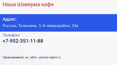Для связи с организацией воспользуйтесь номером телефона: +7-952-351-11-88. Ежедневно с 10:30 до 21:00, вы можете обратиться в эту организацию.