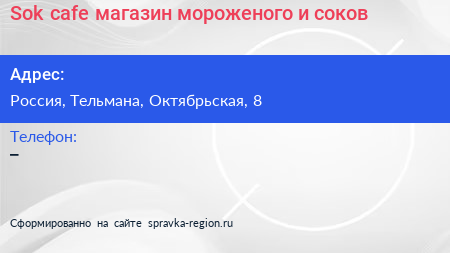 Sok cafe, магазин мороженого и соков по адресу Торговый центр «Ока», Линия Обороны, Простоквашино, Колпино, Тельмановское городское поселение, Тосненский район, Санкт-Петербург, Северо-Западный федеральный округ, 187032, Россия в дальнейшем Организация, размещена в следующих категориях: