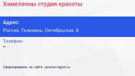 Хамелеоны, студия красоты по адресу Торговый центр «Ока», Линия Обороны, Простоквашино, Колпино, Тельмановское городское поселение, Тосненский район, Санкт-Петербург, Северо-Западный федеральный округ, 187032, Россия в дальнейшем Организация, размещена в следующих категориях: