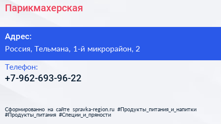 Для связи с организацией воспользуйтесь номером телефона: +7-962-693-96-22. Ежедневно с 10:00 до 20:00, вы можете обратиться в эту организацию.