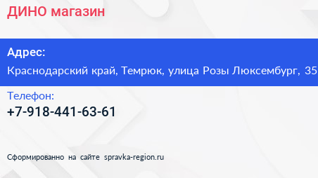 ДИНО, магазин по адресу Краснодарский край, Темрюк, улица Розы Люксембург, 35 в дальнейшем Организация, размещена в следующих категориях:
