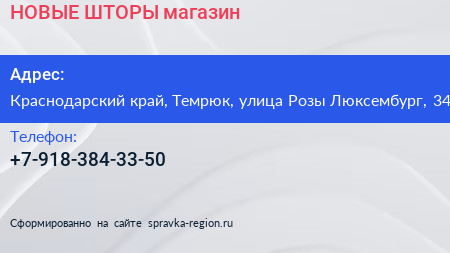 НОВЫЕ ШТОРЫ, магазин по адресу Краснодарский край, Темрюк, улица Розы Люксембург, 34 в дальнейшем Организация, размещена в следующих категориях: