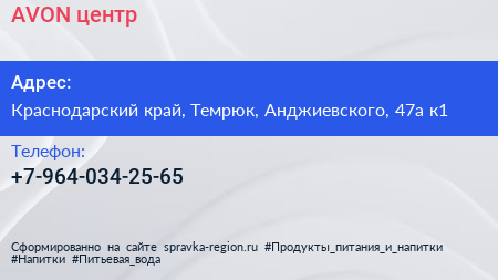 AVON, центр по адресу Краснодарский край, Темрюк, Анджиевского, 47а к1 в дальнейшем Организация, размещена в следующих категориях: