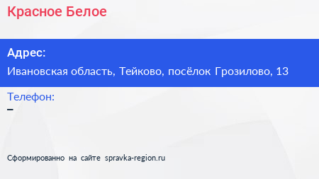 Красное & Белое по адресу Ивановская область, Тейково, посёлок Грозилово, 13 в дальнейшем Организация, размещена в следующих категориях:
