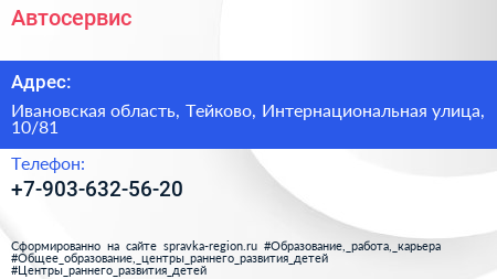 Автосервис по адресу Ивановская область, Тейково, Интернациональная улица, 10/81 в дальнейшем Организация, размещена в следующих категориях: