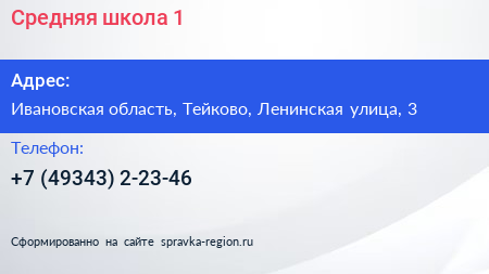 Средняя школа №1 по адресу Ивановская область, Тейково, Ленинская улица, 3 в дальнейшем Организация, размещена в следующих категориях: