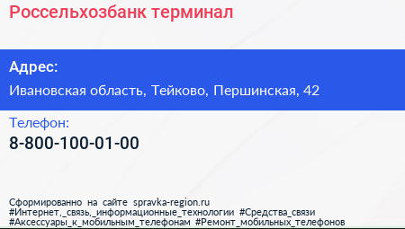 Россельхозбанк, терминал по адресу Ивановская область, Тейково, Першинская, 42 в дальнейшем Организация, размещена в следующих категориях: