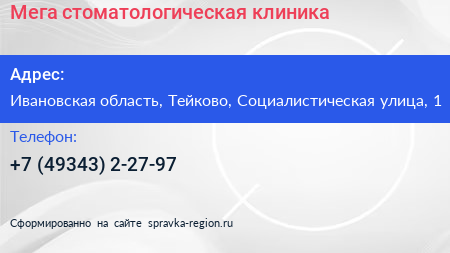 Мега, стоматологическая клиника по адресу Ивановская область, Тейково, Социалистическая улица, 1 в дальнейшем Организация, размещена в следующих категориях: