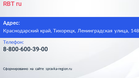 RBT.ru по адресу Краснодарский край, Тихорецк, Ленинградская улица, 148 в дальнейшем Организация, размещена в следующих категориях: