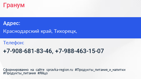 Гранум по адресу Краснодарский край, Тихорецк, в дальнейшем Организация, размещена в следующих категориях: