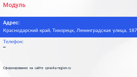Модуль по адресу Краснодарский край, Тихорецк, Ленинградская улица, 187 в дальнейшем Организация, размещена в следующих категориях:
