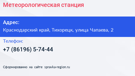 Метеорологическая станция по адресу Краснодарский край, Тихорецк, улица Чапаева, 2 в дальнейшем Организация, размещена в следующих категориях: