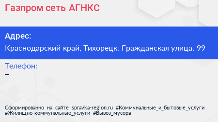 Газпром, сеть АГНКС по адресу Краснодарский край, Тихорецк, Гражданская улица, 99 в дальнейшем Организация, размещена в следующих категориях: