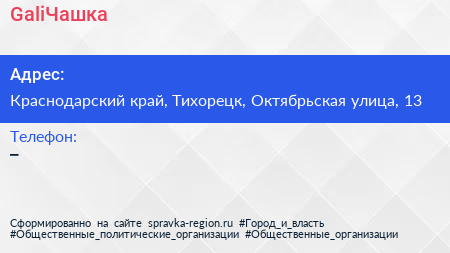 GaliЧашка по адресу Краснодарский край, Тихорецк, Октябрьская улица, 13 в дальнейшем Организация, размещена в следующих категориях: