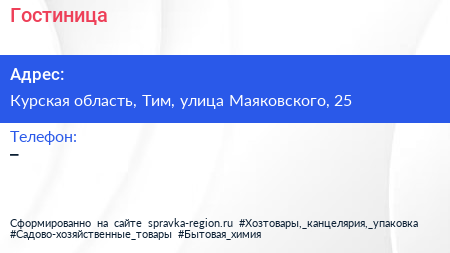 Гостиница по адресу Курская область, Тим, улица Маяковского, 25 в дальнейшем Организация, размещена в следующих категориях: