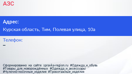 АЗС по адресу Курская область, Тим, Полевая улица, 10а в дальнейшем Организация, размещена в следующих категориях: