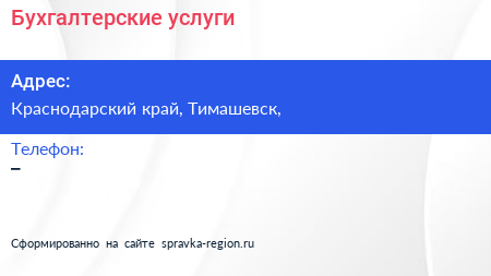 Бухгалтерские услуги по адресу Краснодарский край, Тимашевск, в дальнейшем Организация, размещена в следующих категориях: