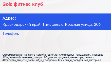 Gold, фитнес-клуб по адресу Краснодарский край, Тимашевск, Красная улица, 206 в дальнейшем Организация, размещена в следующих категориях: