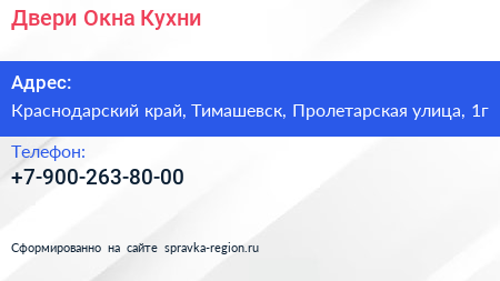 Двери+Окна+Кухни по адресу Краснодарский край, Тимашевск, Пролетарская улица, 1г в дальнейшем Организация, размещена в следующих категориях: