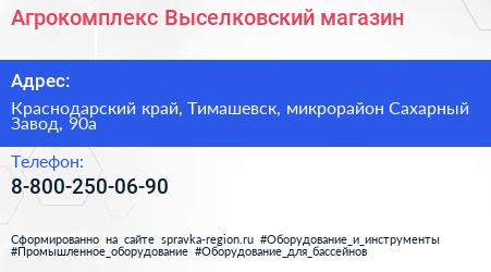 Агрокомплекс Выселковский, магазин по адресу Краснодарский край, Тимашевск, микрорайон Сахарный Завод, 90а в дальнейшем Организация, размещена в следующих категориях: