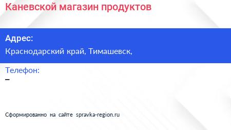 Каневской, магазин продуктов по адресу Краснодарский край, Тимашевск, в дальнейшем Организация, размещена в следующих категориях: