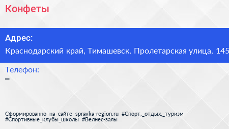 Конфеты по адресу Краснодарский край, Тимашевск, Пролетарская улица, 145 в дальнейшем Организация, размещена в следующих категориях: