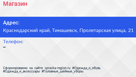 Магазин по адресу Краснодарский край, Тимашевск, Пролетарская улица, 21 в дальнейшем Организация, размещена в следующих категориях: