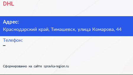 DHL по адресу Краснодарский край, Тимашевск, улица Комарова, 44 в дальнейшем Организация, размещена в следующих категориях: