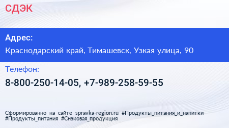 СДЭК по адресу Краснодарский край, Тимашевск, Узкая улица, 90 в дальнейшем Организация, размещена в следующих категориях: