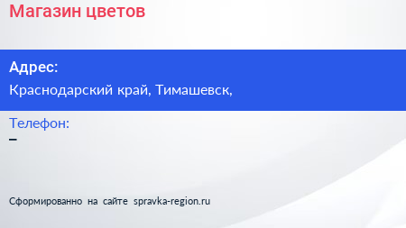 Магазин цветов по адресу Краснодарский край, Тимашевск, в дальнейшем Организация, размещена в следующих категориях: