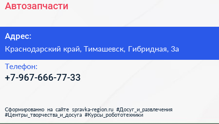 Автозапчасти по адресу Краснодарский край, Тимашевск, Гибридная, 3а в дальнейшем Организация, размещена в следующих категориях: