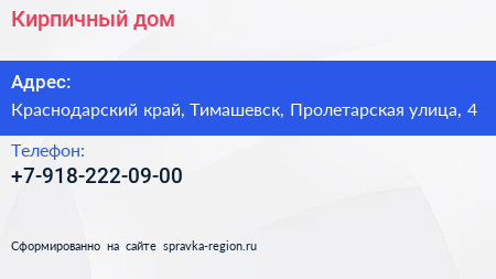 Адрес: Краснодарский край, Тимашевск, Пролетарская улица, 161