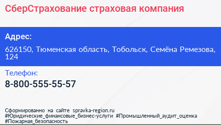 СберСтрахование, страховая компания по адресу 626150, Тюменская область, Тобольск, Семёна Ремезова, 124 в дальнейшем Организация, размещена в следующих категориях: