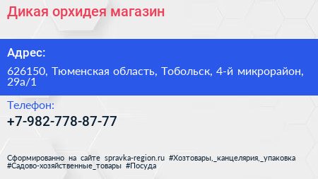 Дикая орхидея, магазин по адресу 626150, Тюменская область, Тобольск, 4-й микрорайон, 29а/1 в дальнейшем Организация, размещена в следующих категориях: