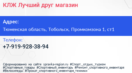 КЛЖ Лучший друг, магазин по адресу Тюменская область, Тобольск, Промкомзона 1, ст1 в дальнейшем Организация, размещена в следующих категориях: