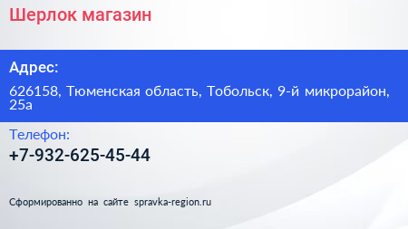 Шерлок, магазин по адресу 626158, Тюменская область, Тобольск, 9-й микрорайон, 25а в дальнейшем Организация, размещена в следующих категориях: