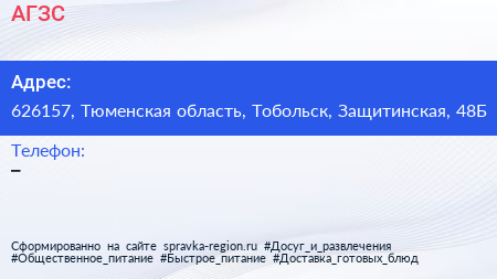 АГЗС по адресу 626157, Тюменская область, Тобольск, Защитинская, 48Б в дальнейшем Организация, размещена в следующих категориях: