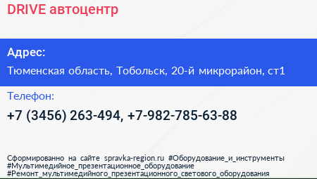 DRIVE, автоцентр по адресу Тюменская область, Тобольск, 20-й микрорайон, ст1 в дальнейшем Организация, размещена в следующих категориях: