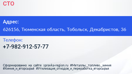 СТО по адресу 626156, Тюменская область, Тобольск, Декабристов, 36 в дальнейшем Организация, размещена в следующих категориях: